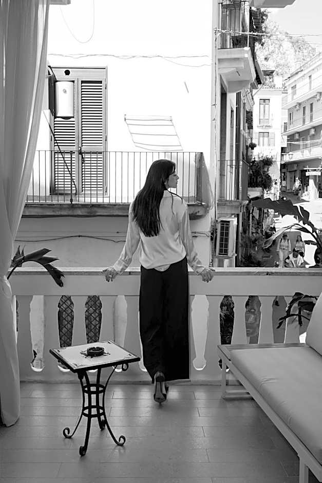 Room with attached bathroom with air conditioning, free Wi-Fi, and satellite TV. The balcony overlooks Taormina. It has parquet floors, characteristic Sicilian furniture, and a mini-bar. The bathroom has modern furnishings, a rain shower, and a toiletry set. It also has double-glazed windows.